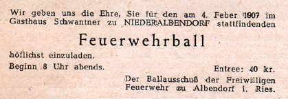zu spendieren. So nahm auch der Ondroffer Feuerwehrball anno 1907 seinen gewohnten