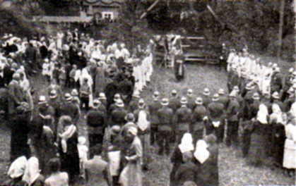Die "Öwrkolwa" [1] so hieß das subalpine Bild um die Kolbenkammbaude ermöglichten den Blick weit nach Süden und Osten. Im Süden grüßte die massige, so recht in die Landschaft passende "alte Marschendorfer Kirche" und noch weiter der "Freiheiter Pilz". Die "Öwrkolwa" waren durch ganz Marschendorf zu sehen und oft wenn im Aupatal noch die Blätter fielen, trugen die letzten Häuser am Kolbenbach schon ein winterliches Gewand; für uns Kinder immer ein überaus freudiges und aufregendes Ereignis. Im Osten schlängelte sich zur 1000 m hohen Maxhütte die Gemeinde "Dörrengrund" sowie die Ausläufer des Rehorns an das Riesengebirge. Rings um die Öwrkolwa weitete sich mittlerer Mischwald, den im Osten die Albendorfer Felder und im Westen der Kolbenkamm abgrenzten. Am Südabhang der Kolbenkammbaude fand man ein Stück urwüchsiges Riesengebirgsland, das bis in die jüngste Gegenwart von jeder Übermodernisierung verschont geblieben war. Die Baude hieß nicht zufällig "die stille . .", dass ein Schwarm sangesfreudiger Kammwanderer hier kurz Einkehr hielt oder dass Sonntagsausflügler von hüben und drüben auf einige Stunden Bergfreuden und Erholung suchten. Besitzer Kneifel hatte sich wahrlich ein schönes Fleckchen ausgesucht, als er seine Kammbaude vor 2 Jahrzehnten an die Quellen des Kolbenbaches erbaute. Um die Baude herum standen die Gebirgshäuser von Trübenecker (Kosper Seff), Bönsch (Bortl Seff) und Zosel und eine halbe Wegstunde am Bach entlang die Luftschenke (Sagasser). Diese netten Riesengebirgshäuser hatten uralte Traditionen bewahrt. Was hier der karge Boden gab, reichte kaum zum Leben, verschweige zu einem Verdienste; zusätzliche Tagelöhnerarbeiten in den Albendorfer Kalkbrüchen oder auf der Marschendorfer Herrschaft waren unerläßlich. Doch die große Naturverbundenheit dieser Menschen hatte sie mehr als zufrieden und glücklich gemacht, wenn auch jahrein, jahraus das Leben in den letzten Jahrzehnten dort oben beschwerlicher geworden war. Über die kurzen Sommermonate trieben schon in aller Früh Austreiber das Vieh auf die würzigen Weiden mit lautem „Ho-naus, Ho-naus-Ho". Das bunte Schellengeläute war dann über den ganzen Tag vielerorts zu hören, und erst wenn die Sonne hinter dem Langenberg zur Ruhe gegangen war, trieben sie wieder das liebe Vieh mit "Ho-nei, Ho-nei, Ho-" zurück in die Stallungen. Noch zur späten Abendstunde spielte von irgendwoher eine Ziehharmonika vertraute Gebirglerweisen wie das Lied von "den Kirschen in Nachbarsgarten" vom "Seff blei do " oder "Ei dam kühla Bronna" und andere; dazu sangen die "Made", während drin in den Häuschen die Mütter auf umgekehrten Tellern selbstzubereiteten Quark zu "Kaslan" [2] bzw. "Quarglan" schlugen. Am nächsten Morgen trugen sie die kostbare Ware in großen Buckelkörben zu Plechatscha oder Häringa nach Albendorf. War der Sommer dahin, dann holten die Häusler dicke Reisigbündel und belegten damit ihre Hauswände, denn der Winter war manchmal über Nacht schnell da.